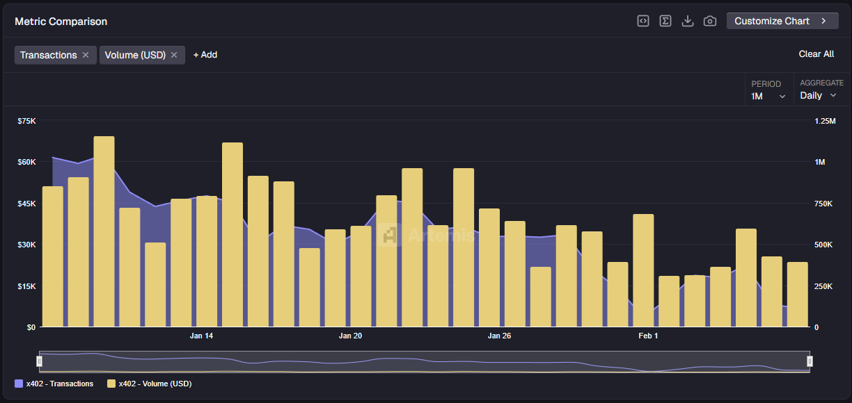 Interestingly, x402 transactions are averaging ~200k per day over the past seven days, down from last weeks ~400k per day average: