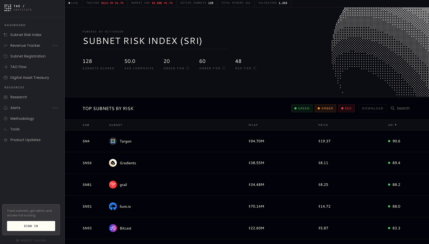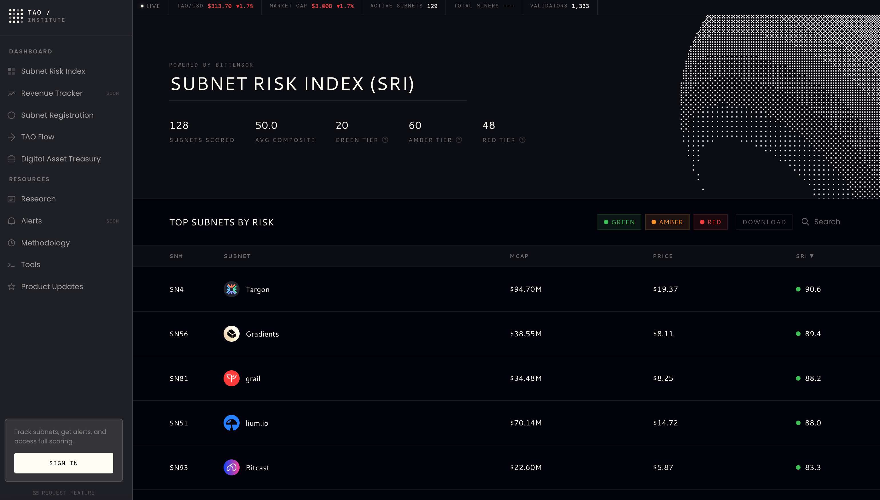 This brings me to TAO Institute. We are launching the Subnet Risk Index (SRI) this week; the first institutional-grade risk evaluation framework for Bittensor subnets