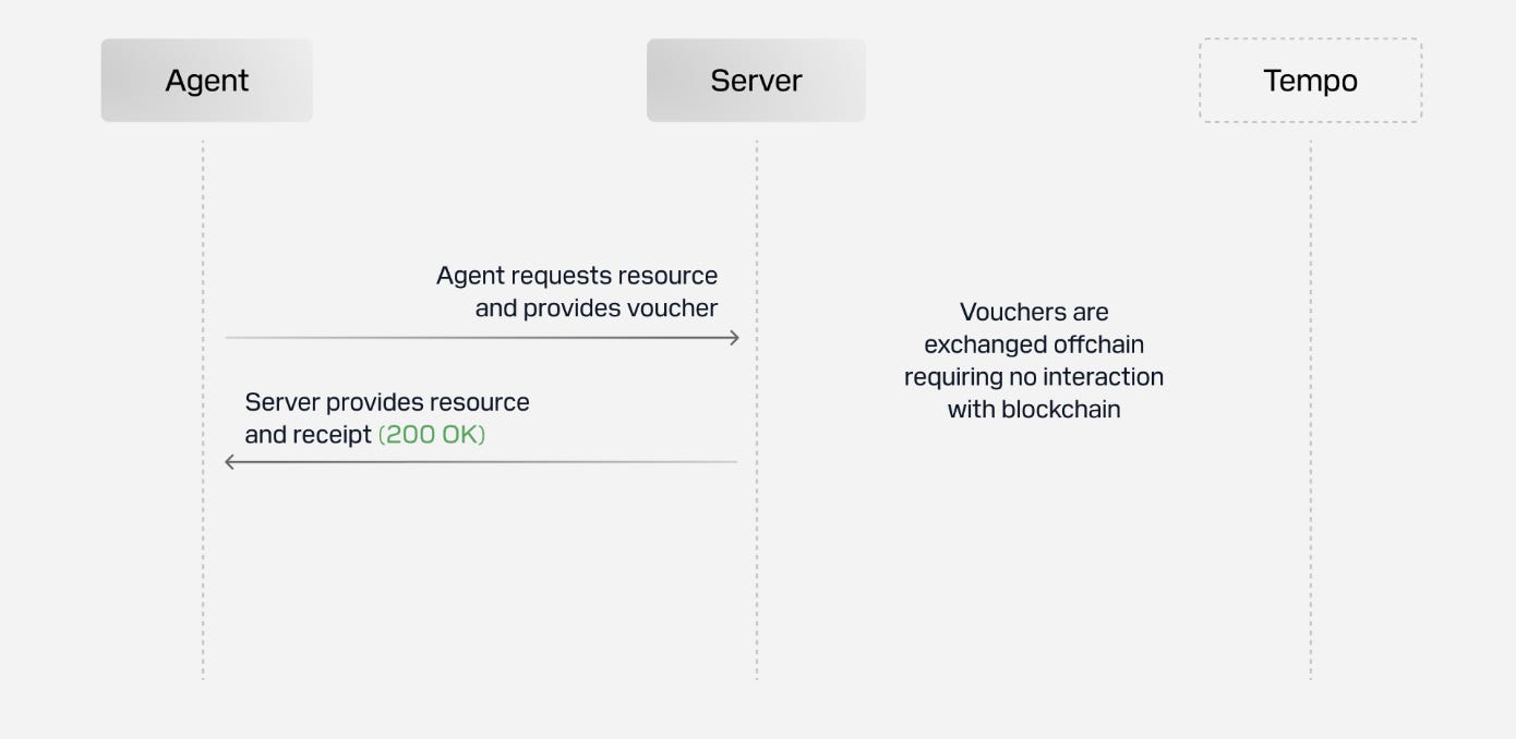 An agent pre-authorizes a spending limit once, then streams micropayments against that session continuously using lightweight off-chain vouchers, settling in bulk rather than per-request on-chain