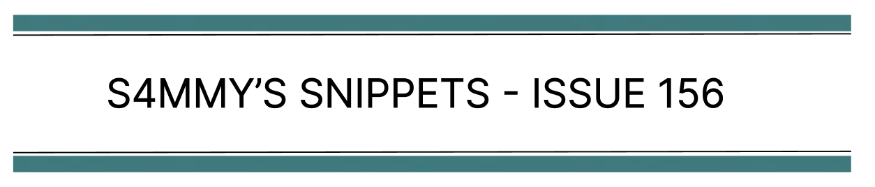 That’s a wrap for issue 156 of S4mmy’s Snippets. I hope you enjoyed it.
