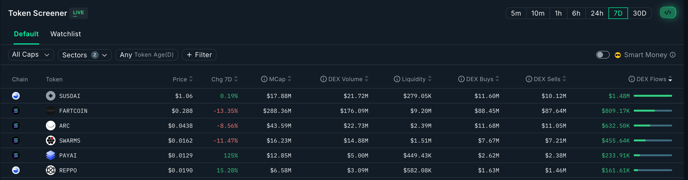 Nansen’s smart net capital flows show several protocols with more than $150k: