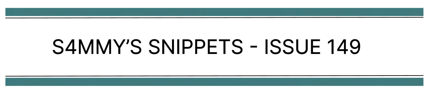That’s a wrap for issue 149 of S4mmy’s Snippets. I hope you enjoyed it.