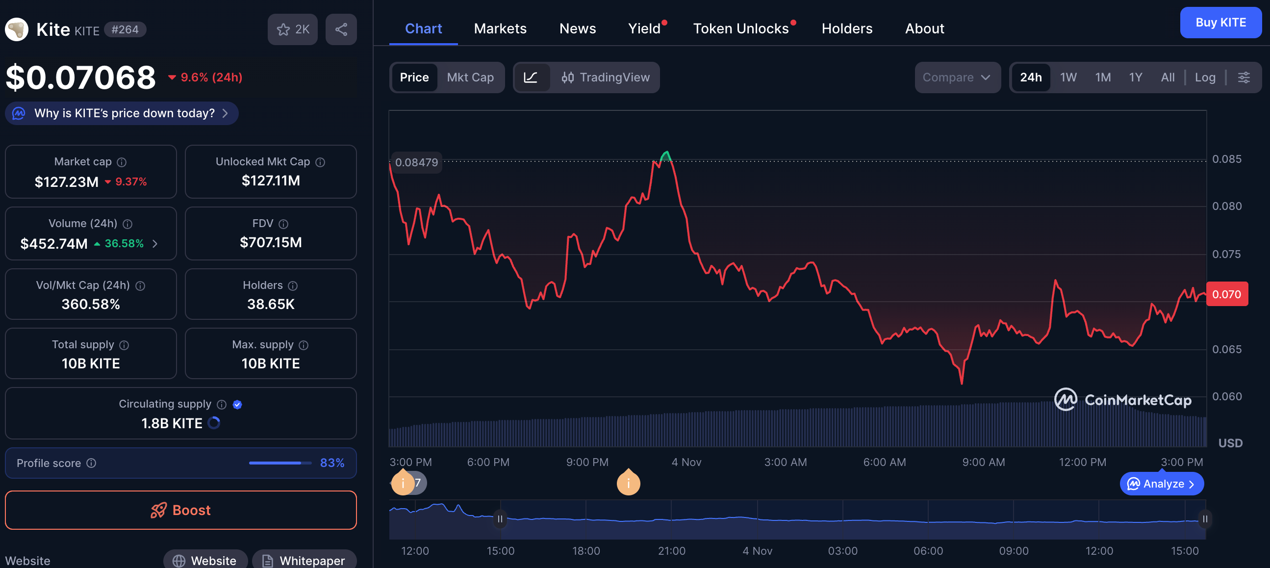 KITE AI: Hype around its upcoming token launch with around a $1bn launch valuation, now trading at $700m