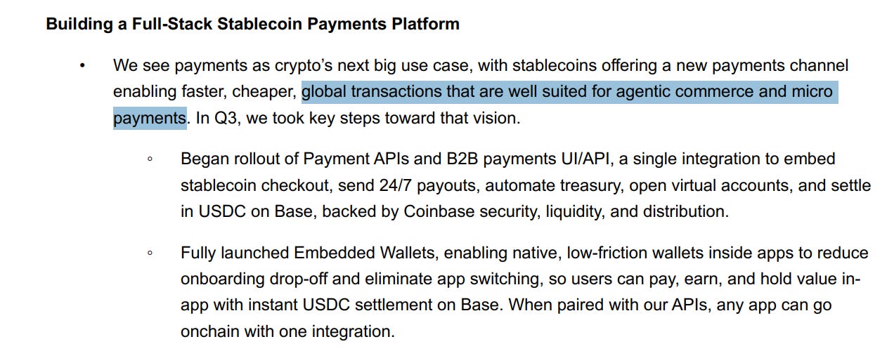 While x402 has sipped slightly from last week, Coinbase mentioned agentic commerce in its recent quarterly earnings report: