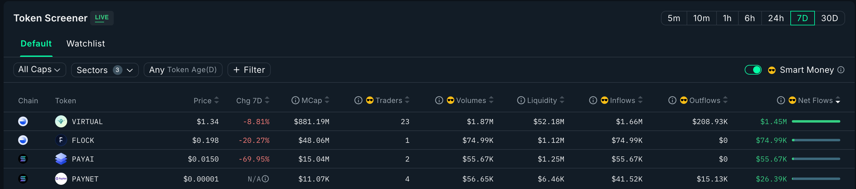 Smart capital net inflows continue on a selection of AI coins this week that are focused on agentic commerce, specifically x402: