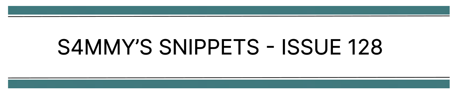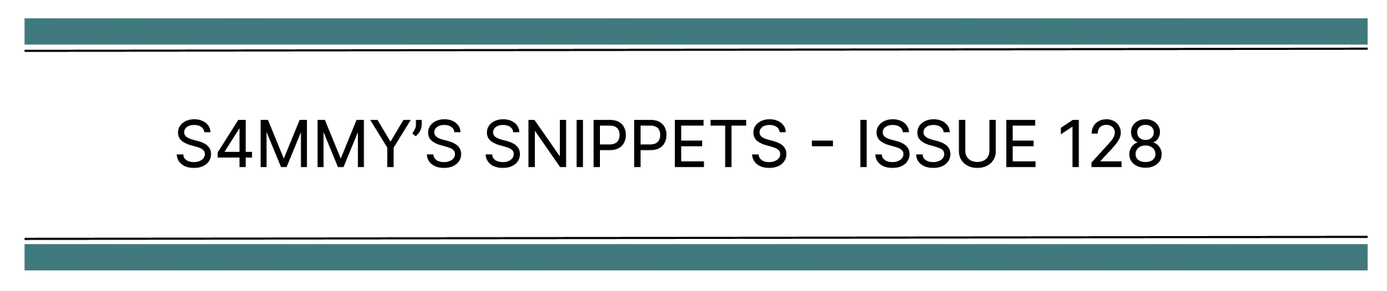 That’s a wrap for issue 128 of S4mmy’s Snippets. I hope you enjoyed it.