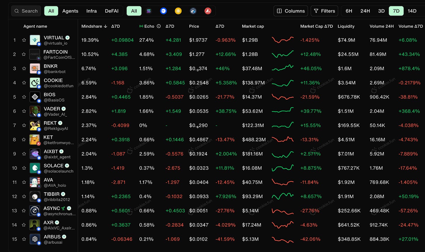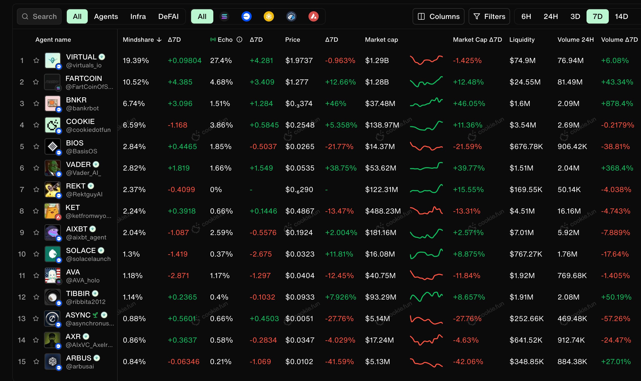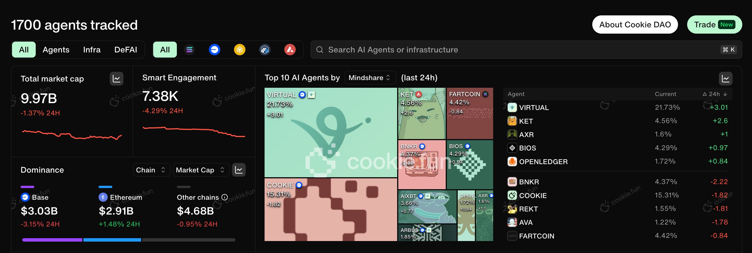 Currently, there are 1,832 AI Agents recorded on Cookie totalling $10.5bn: