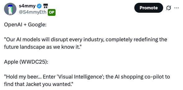 Apple’s Worldwide Developer Conference (WWDC) was a disappointment due to a lack of focus on AI, given minimal features limited to Visual Intelligence: