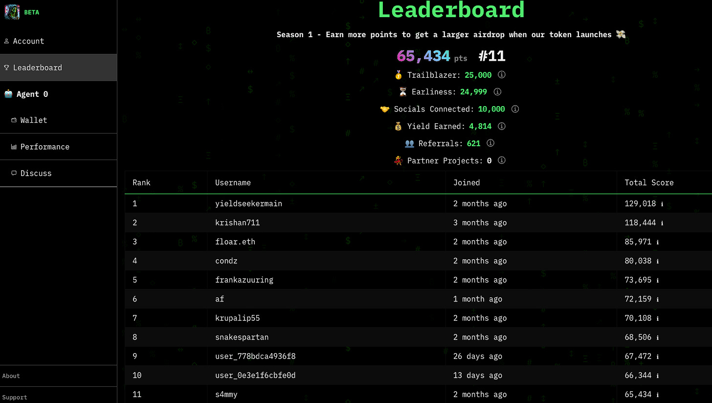 Up to rank 11 on the Yield Seeker leaderboard as this DEFAI solution gains further traction with 621 people now referred and capitalizing on the early leaderboard.