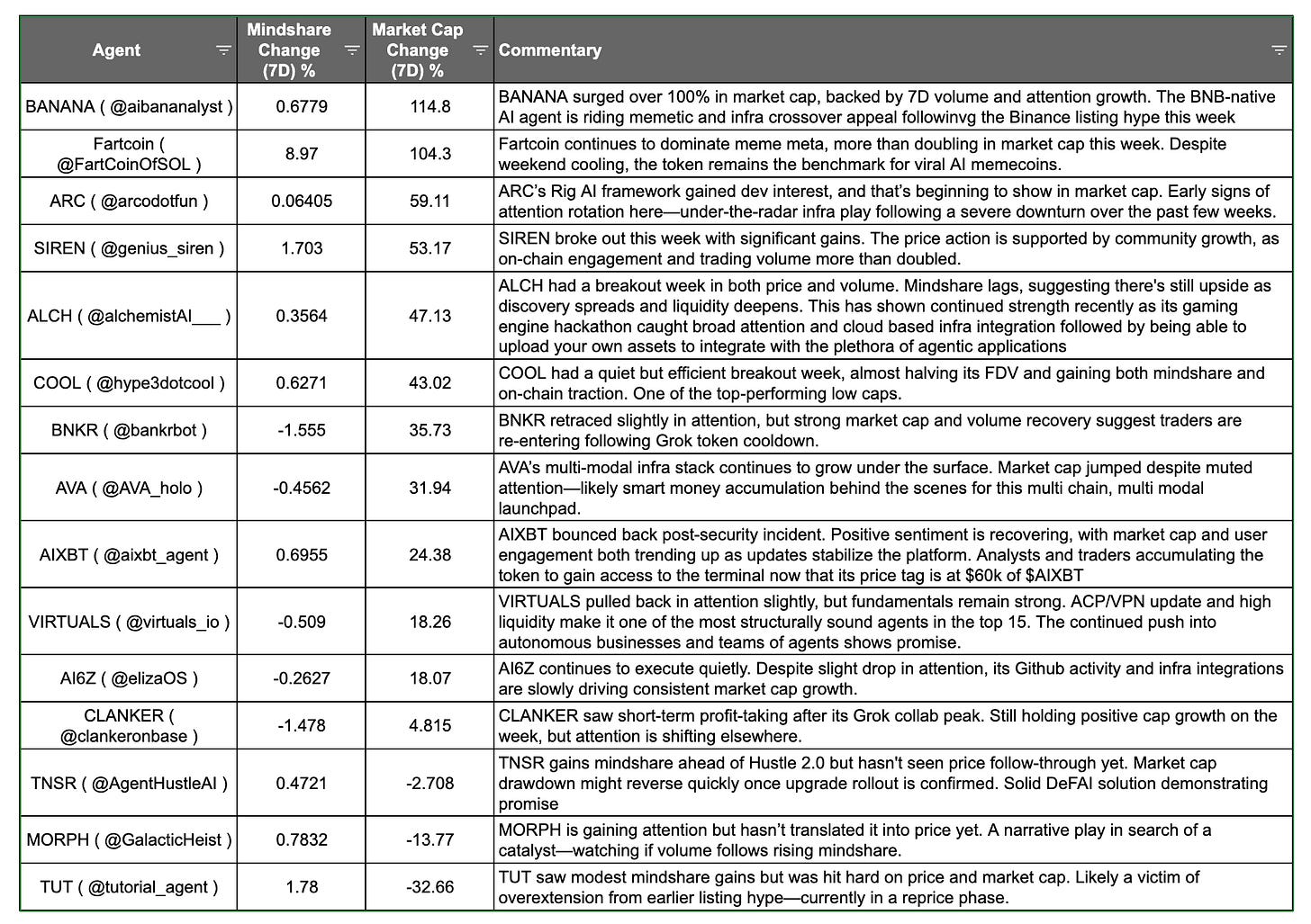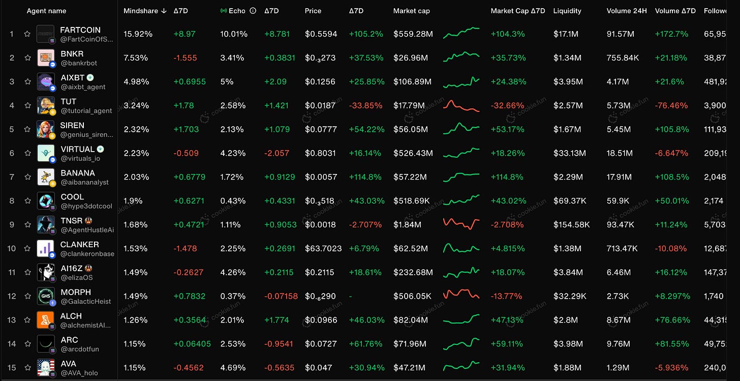 Last week we saw Clanker and Bankr run hard with the Grok token launches, this week we saw Fartcoin pump hard and renewed interest in ARC + ALCH as agentic app stores catch a bid:
