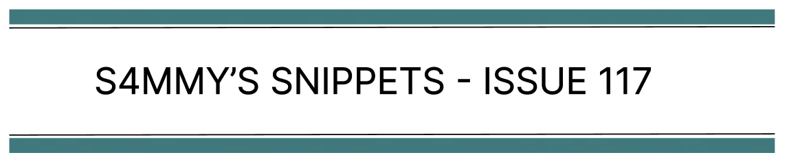 That’s a wrap for issue 117 of S4mmy’s Snippets. I hope you enjoyed it.