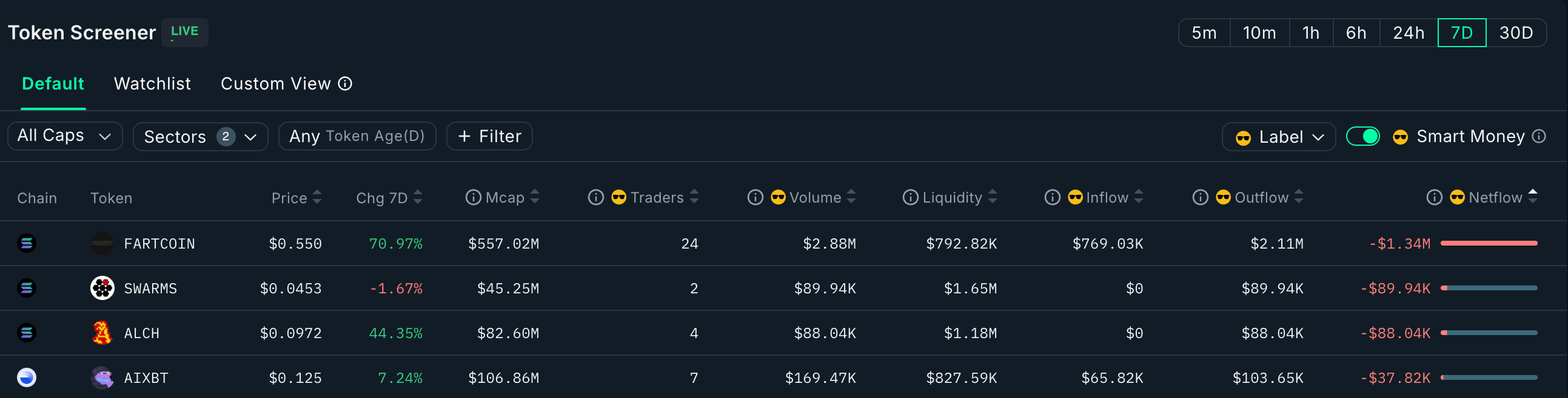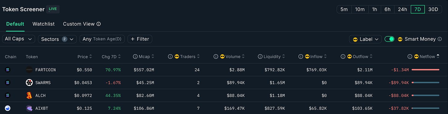 Meanwhile, significant outflows of smart money on Fartcoin as it pumps to $600m with certain traders layering out of their positions as it climbs: