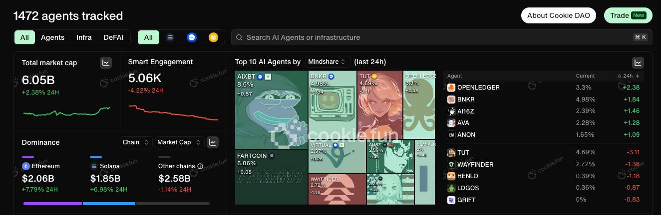 Currently, there are 1,487 AI Agents recorded on Cookie totalling $7bn: