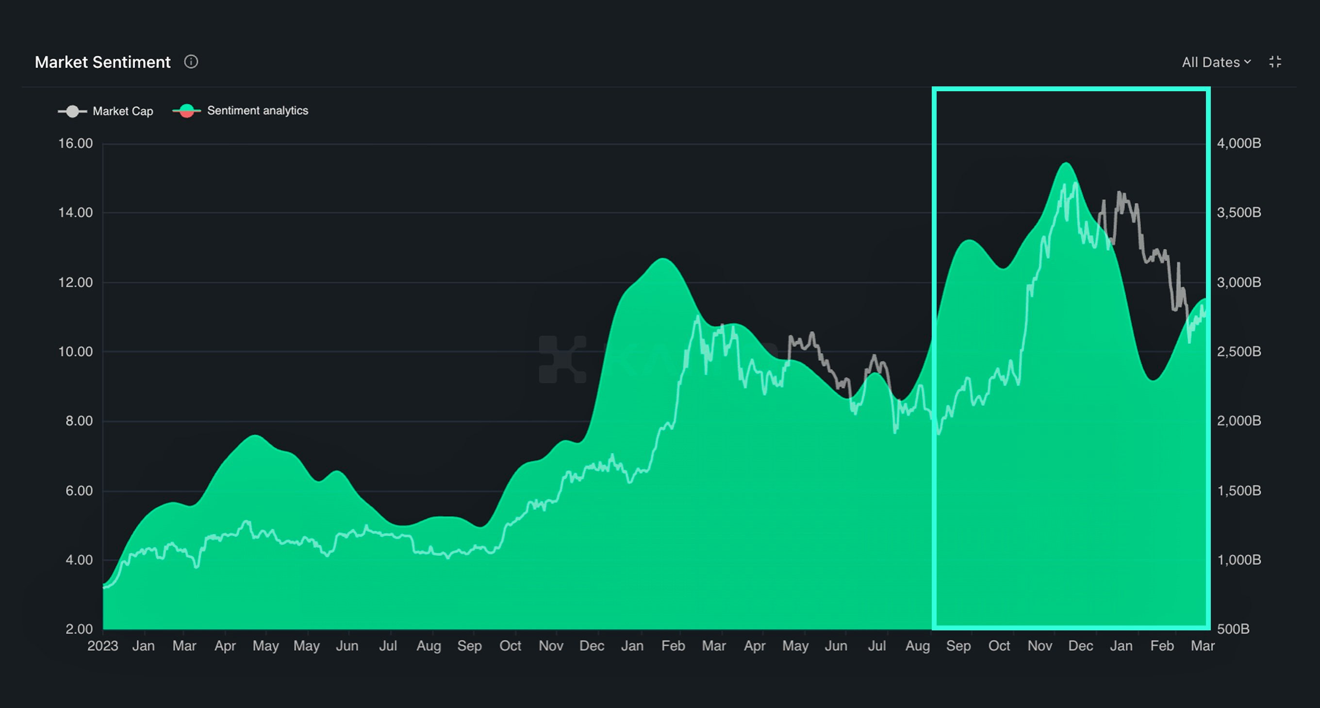 Only 20% are bullish on AI tokens — perhaps the AI slop bots have had an impact on this sentiment, but this also means that there could be a way to go on price if users are insufficiently bullish?