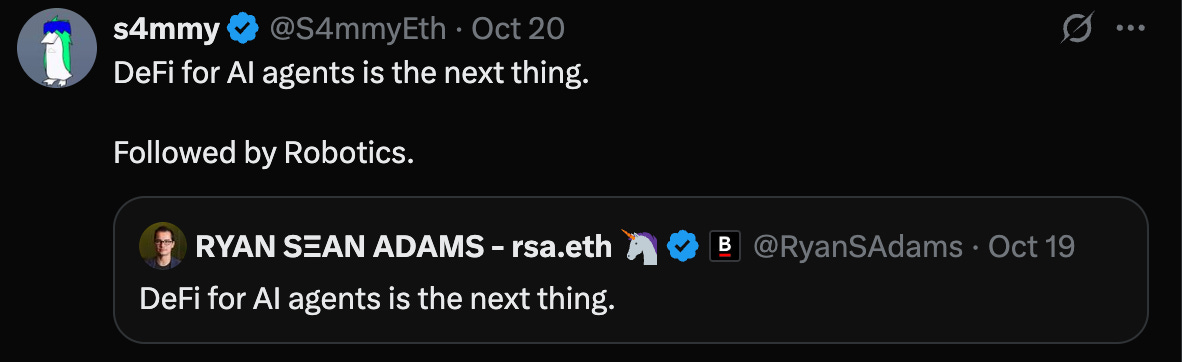 So I do believe that “Defi for AI Agents is the next thing”… then Robotics: