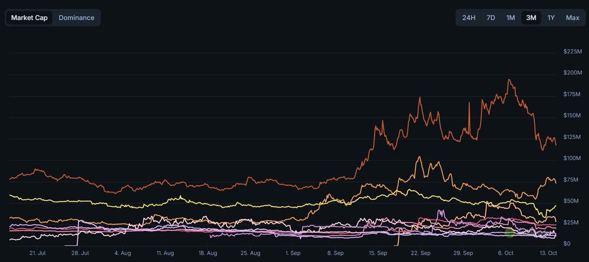 Again, capital appears to be consolidating into the leader within this segment (Peaq), similar to how DeAI’s leader TAO is garnering the bulk of the attention + capital.