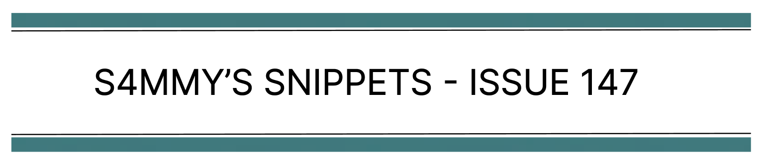 That’s a wrap for issue 147 of S4mmy’s Snippets. I hope you enjoyed it.