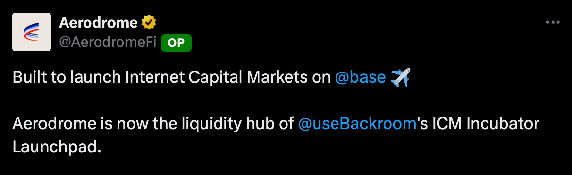 The driver? They partnered with Aerodrome for the first Internet Capital Market (ICM) incubator launchpad on base