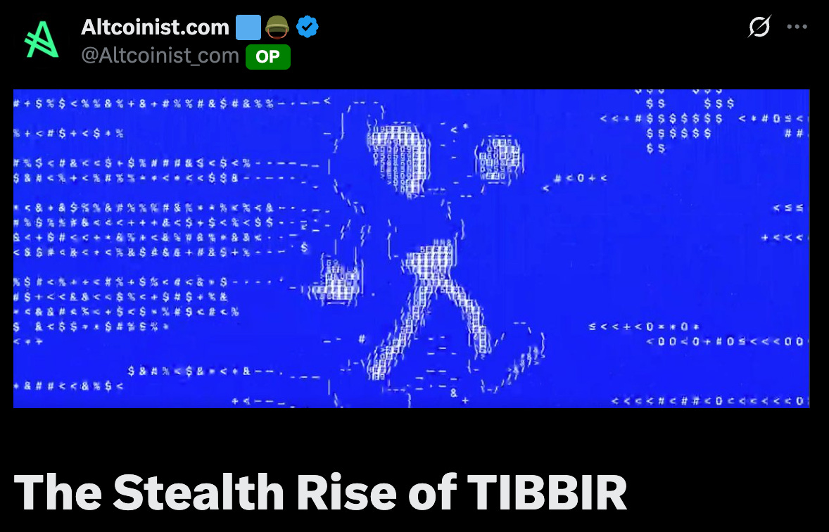 The standout performer from the top 10 by mindshare is TIBBIR (+85%).