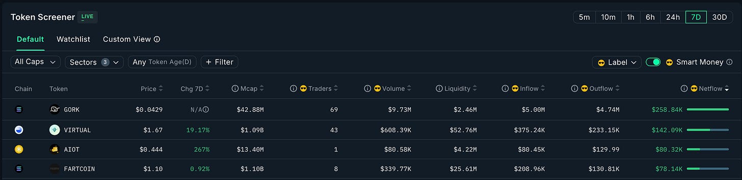 Once again Virtuals continues to be towards the top of the net smart inflows as its Genesis launchpad gains momentum with more profitable launches: