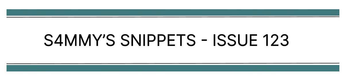 That’s a wrap for issue 123 of S4mmy’s Snippets. I hope you enjoyed it.