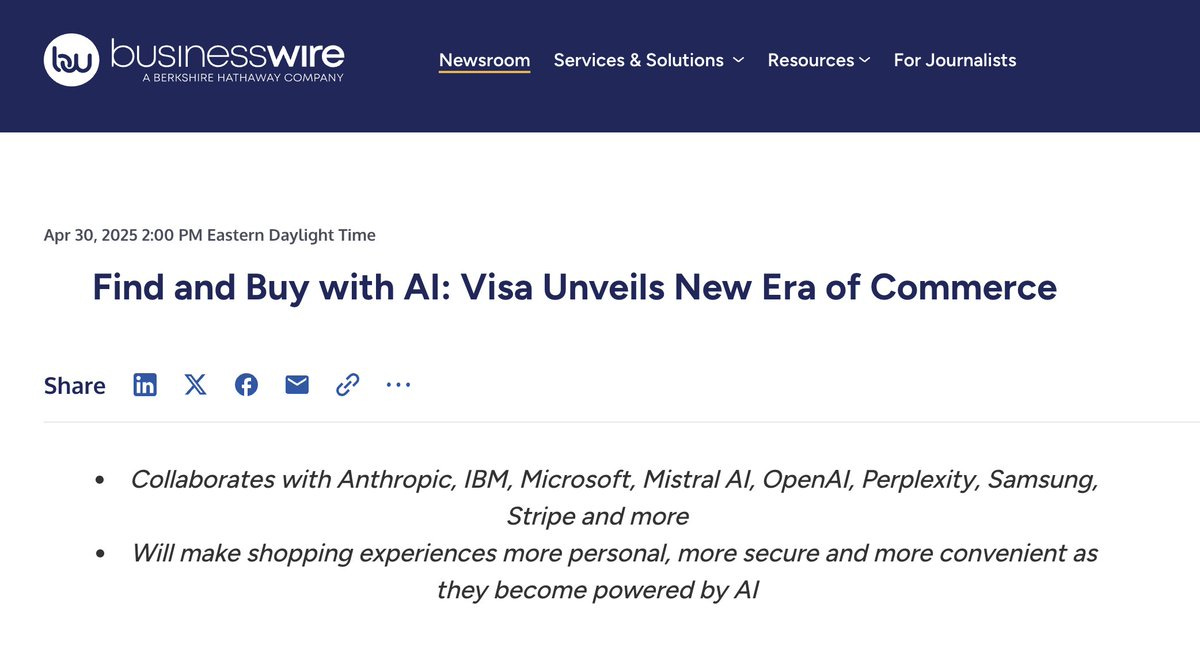 AI agents will soon browse, buy, and manage purchases on users’ behalf—Visa aims to make these transactions secure, trusted, and seamless iv)
