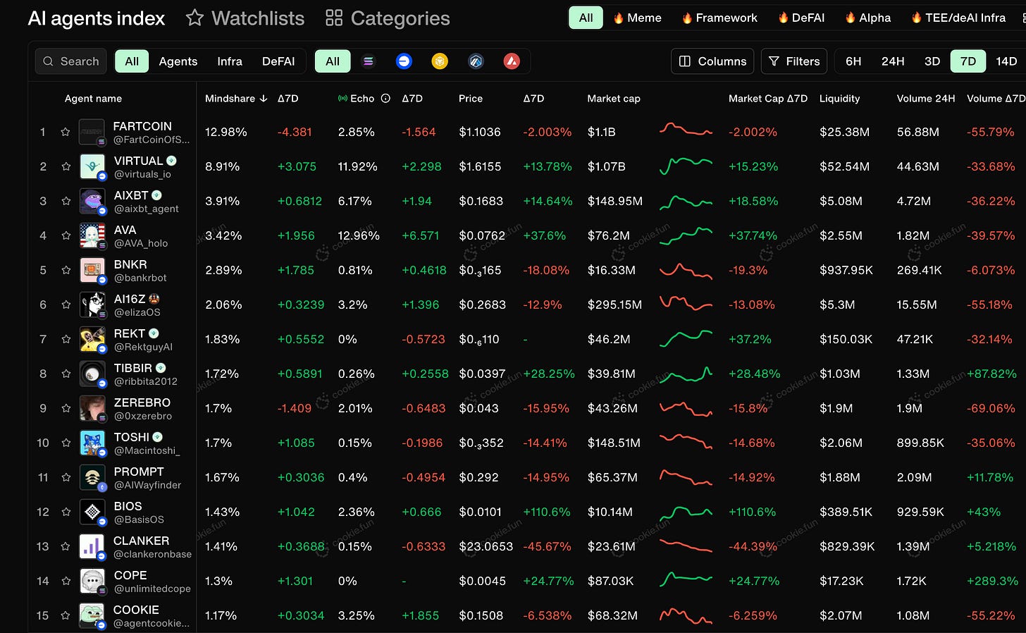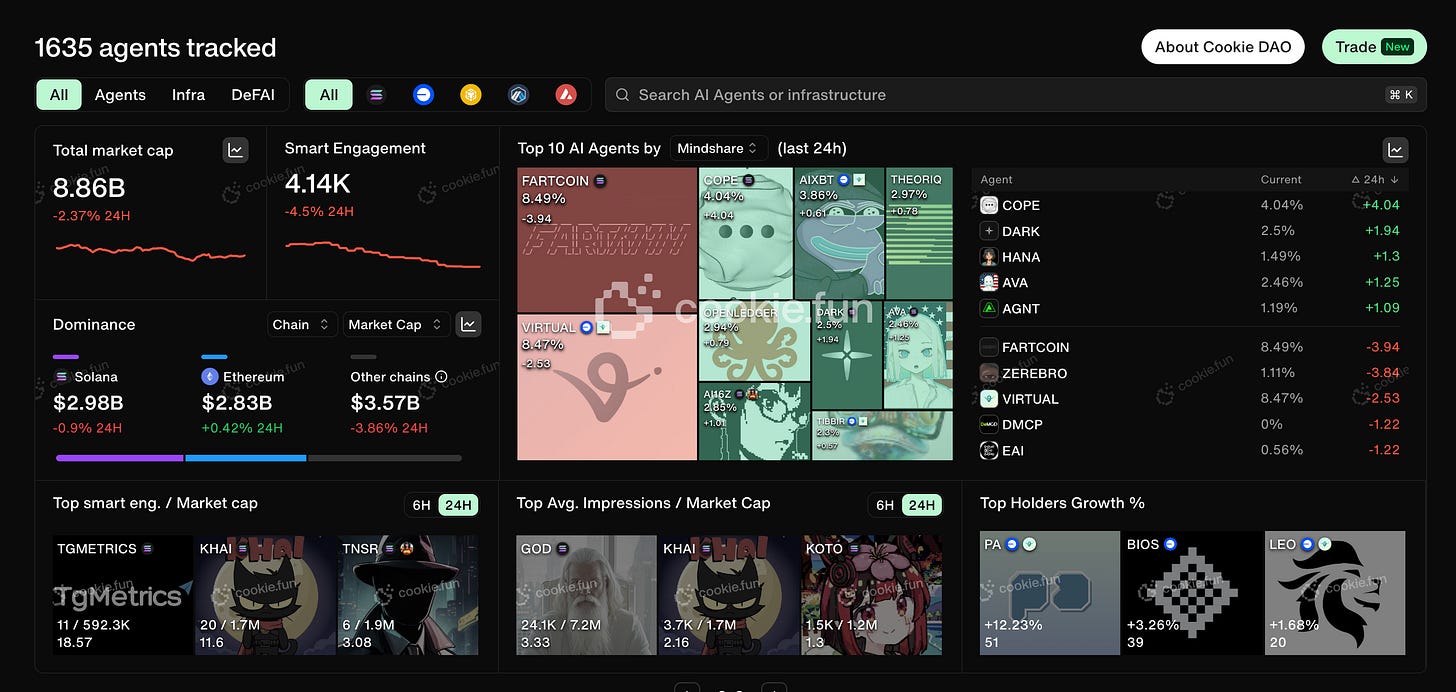 Currently, there are 1,628 AI Agents recorded on Cookie totalling $8.8bn:
