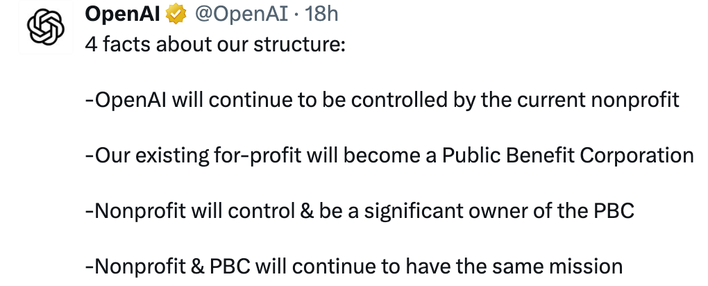 OpenAI also backtracks on its profit focused stance to a non-for profit: