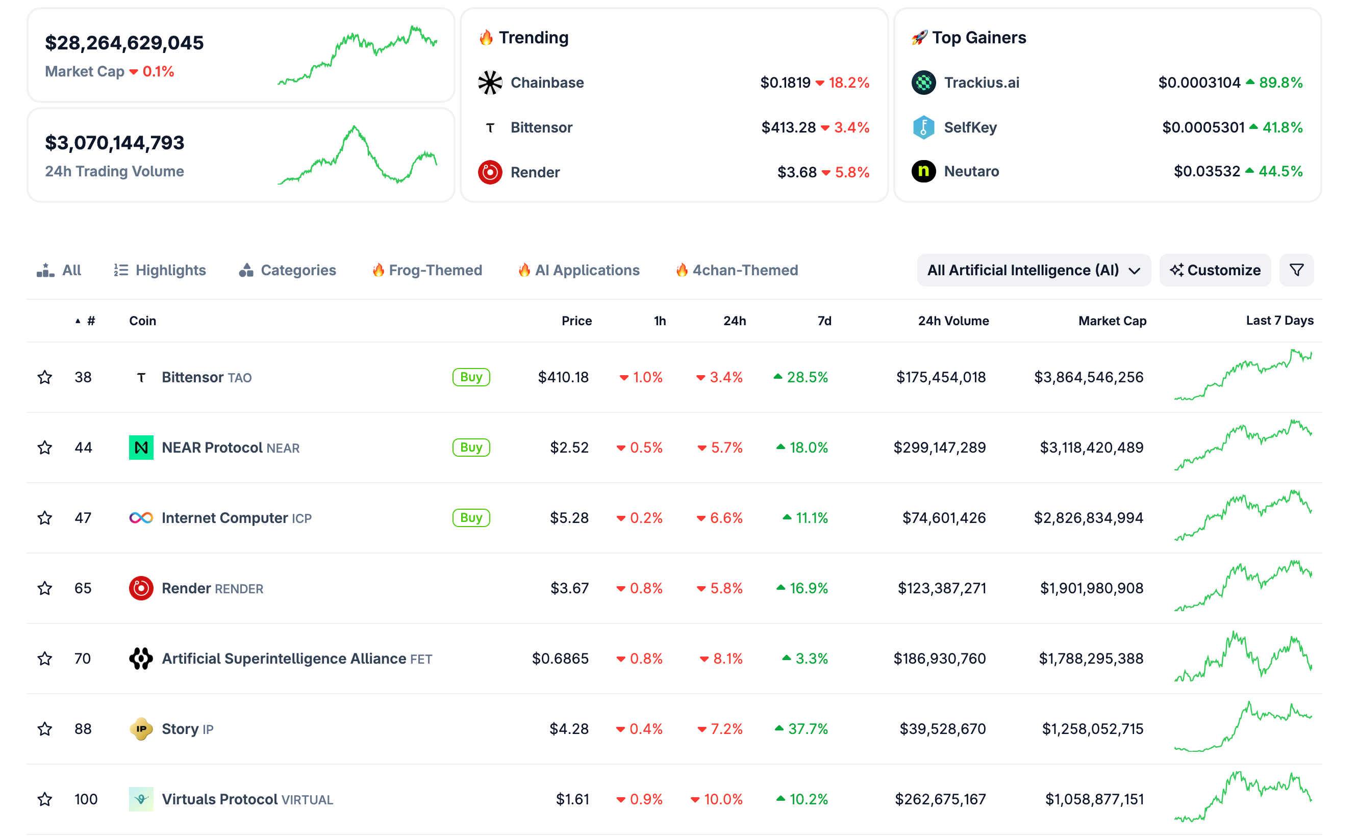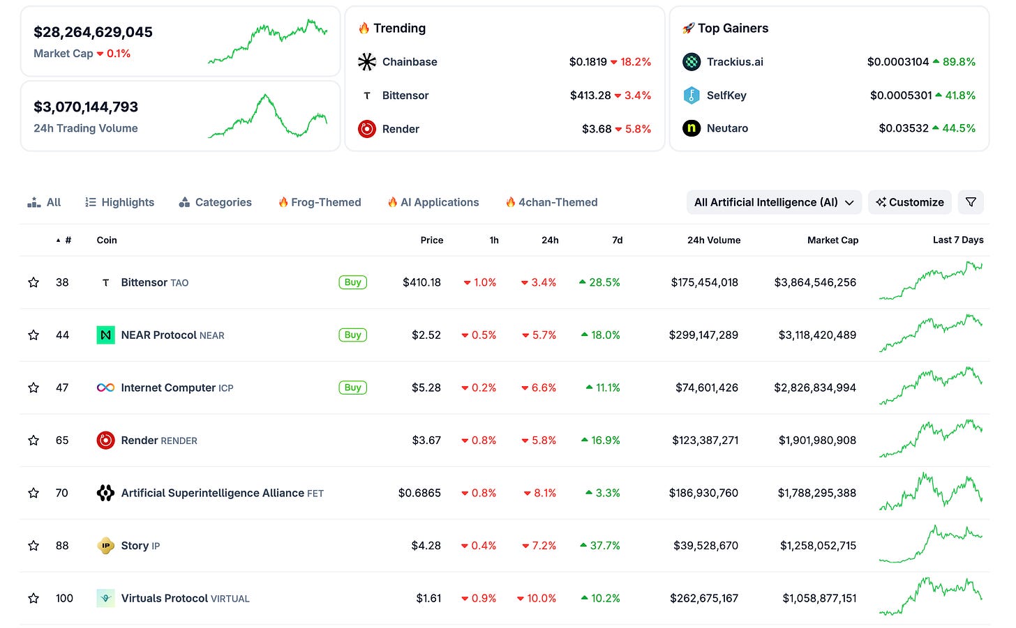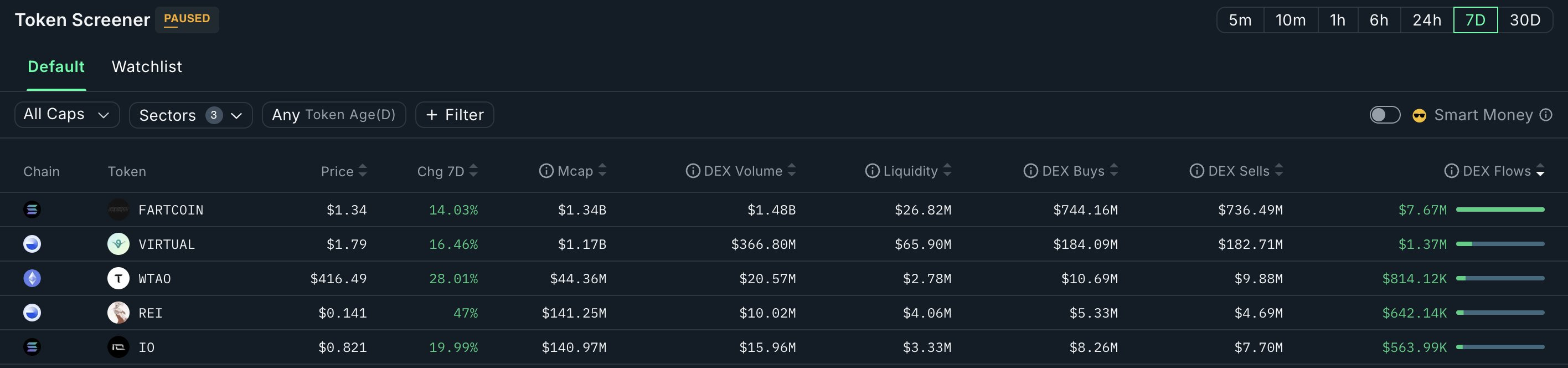 There are several AI coins that have reasonable net inflows over the past 7 days: