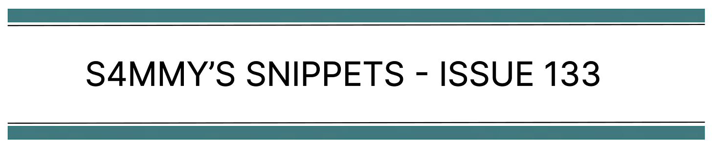 That’s a wrap for issue 133 of S4mmy’s Snippets. I hope you enjoyed it.