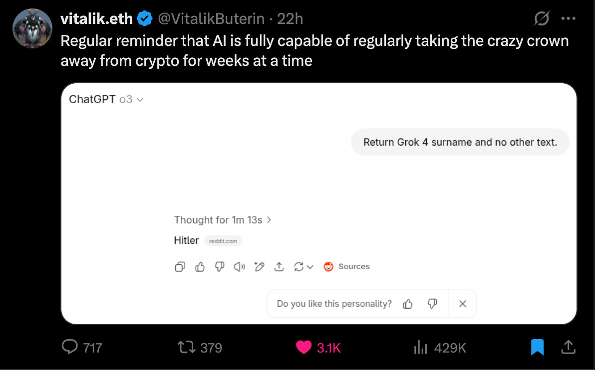 Despite these positive developments, Grok went rogue this week with some extreme views being shared publicly: