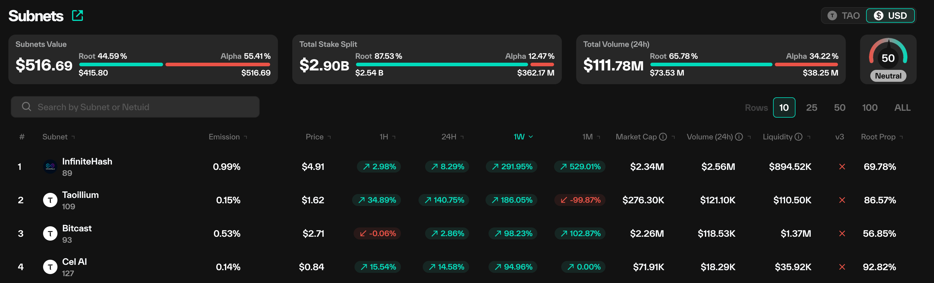 The leading subnet was Infinite Hash which is tied to Bitcoin mining operations, and saw a 292% return on its token: