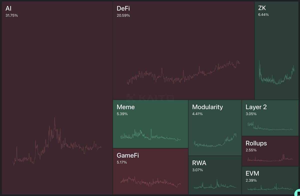 AI and DeFi crypto twitter mindshare remains flat this week, with a combined 53%: