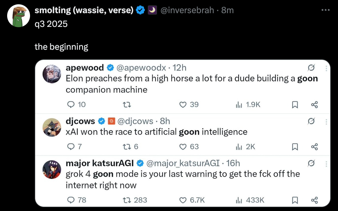 This adverse output from Grok led to the “Artificial Goon Intelligence” reference: