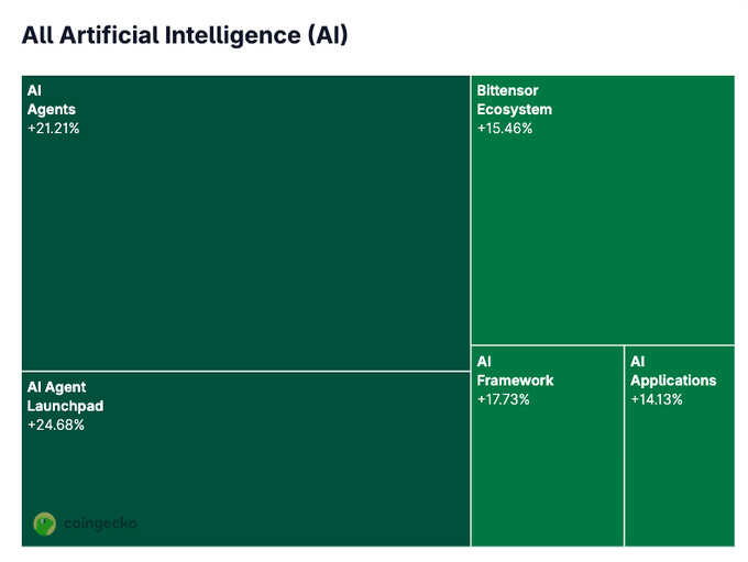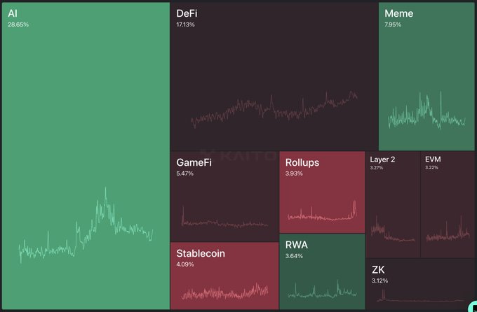 AI mindshare continues to climb with Virtuals and other AI tokens outperforming as launchpads, smart money flows, and Big Tech innovations fuel growing momentum. Is this the next leg up for AI?