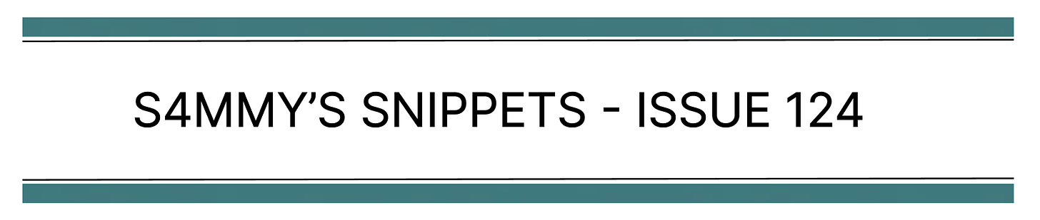 That’s a wrap for issue 124 of S4mmy’s Snippets. I hope you enjoyed it.