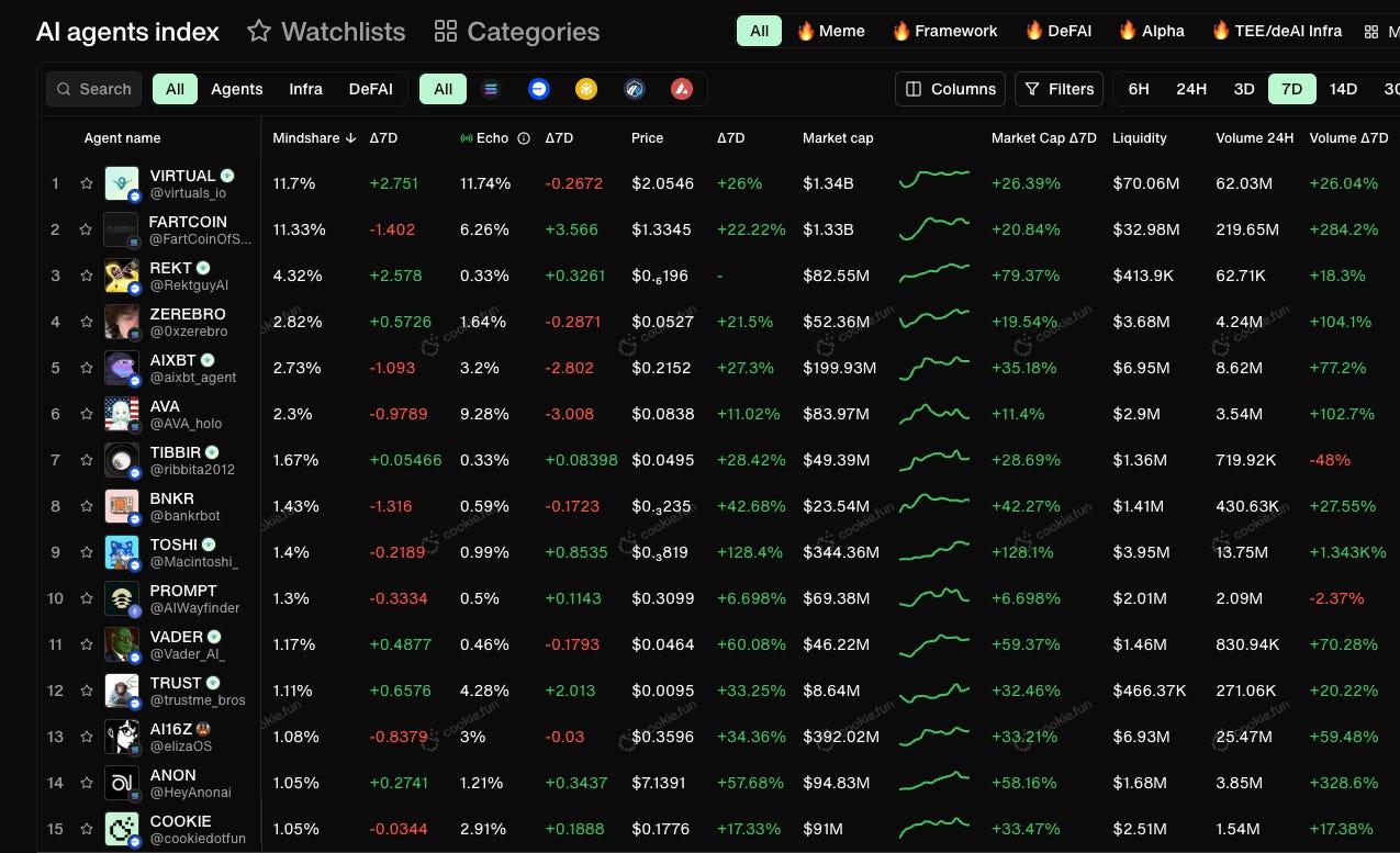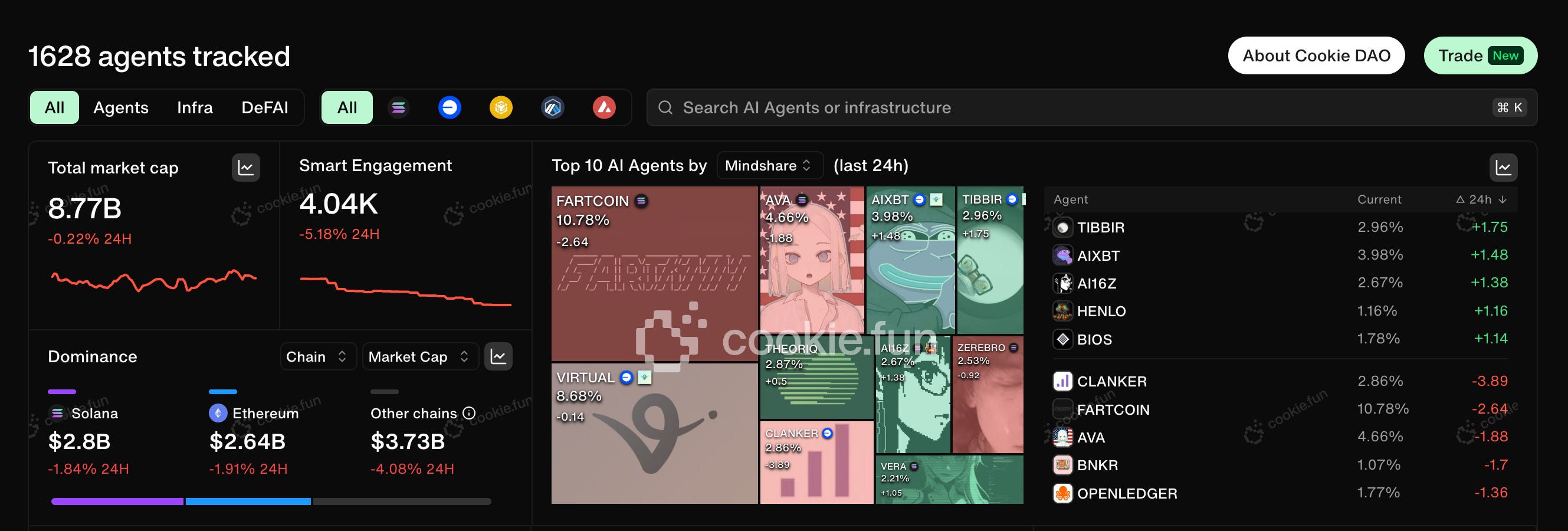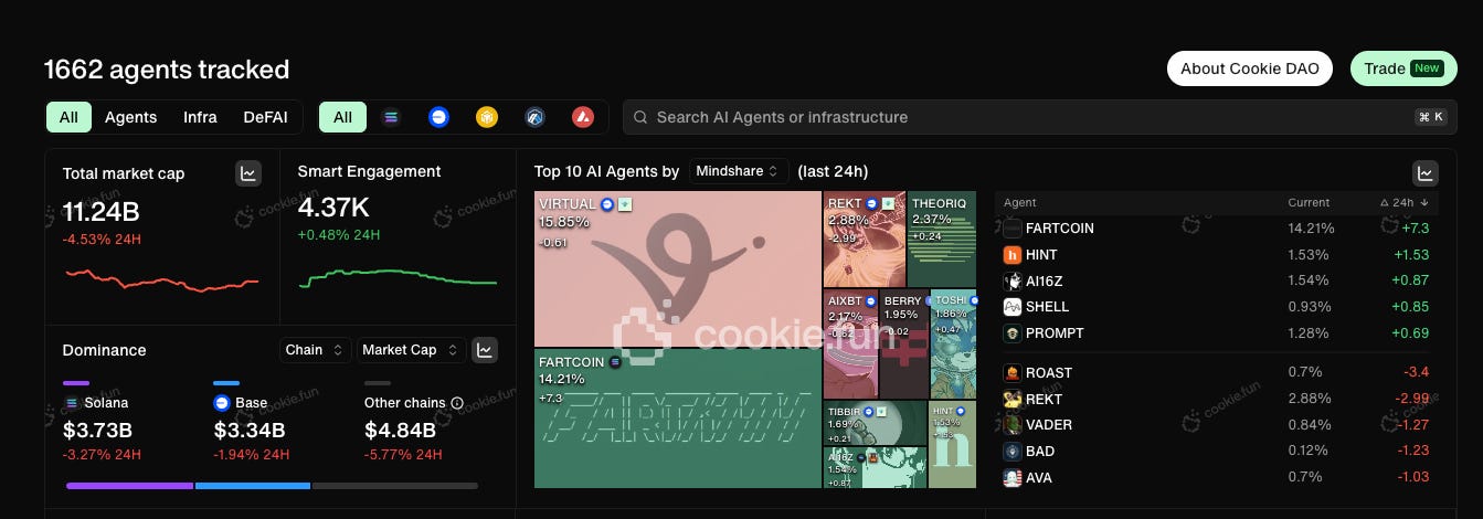 Currently, there are 1,662 AI Agents recorded on Cookie totalling $11.2bn: