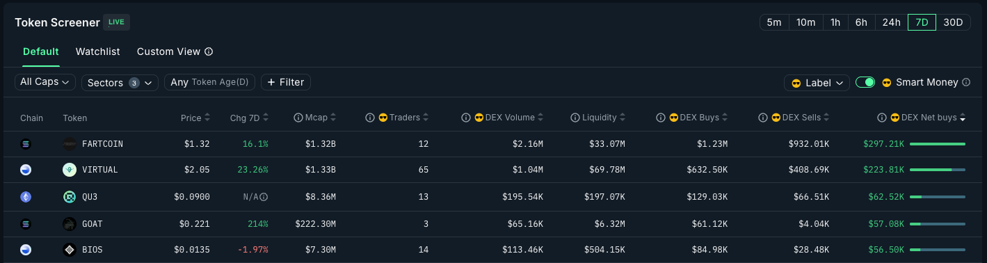 Nansen’s terminal provides great analysis on smart money net inflows.
