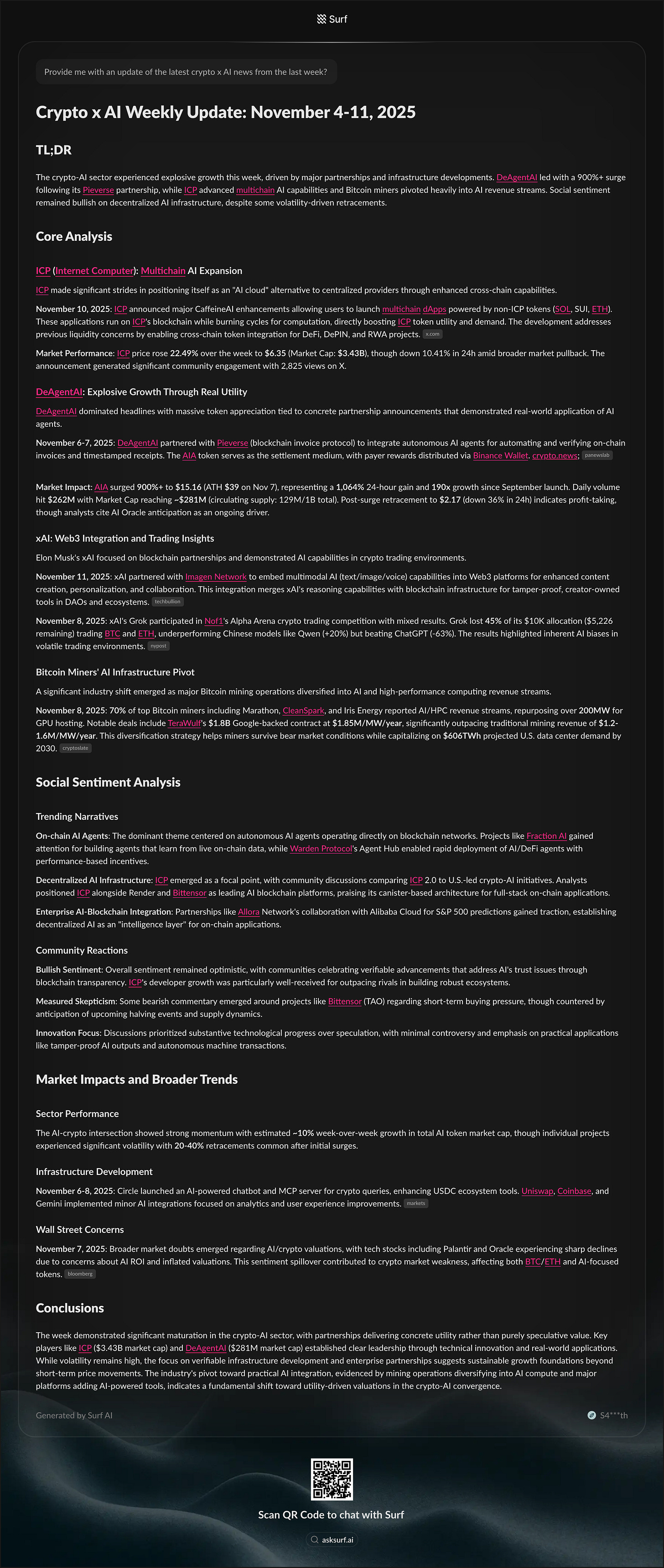 “Provide me with an update of the latest crypto x AI news from the last week”