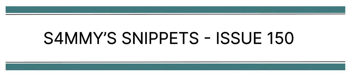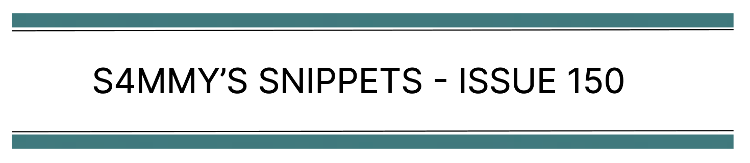 That’s a wrap for issue 150 of S4mmy’s Snippets. I hope you enjoyed it.